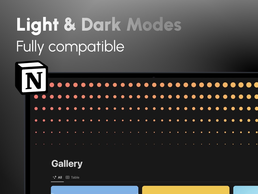 - Custom Color Schemes: multiple colourways that match Notion's palette
